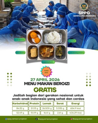 Sajian menu Makan Bergizi Gratis (MBG) dari dapur SPPG Sempol Prajekan patut diacungi jempol. Menu yang disajikan terbukti variatif, higienis, dan mampu menggugah selera makan para murid penerima manfaat di sejumlah sekolah, Senin (27/4/2026).